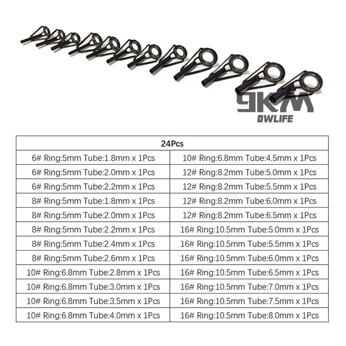 9KM DWLIFE Rod Tip Repair Kit: The fishing rod tips are made of stainless steel frame with ceramic ring, available in a total of 24 sizes, to meet the various types of fishing rods owned by professional anglers.