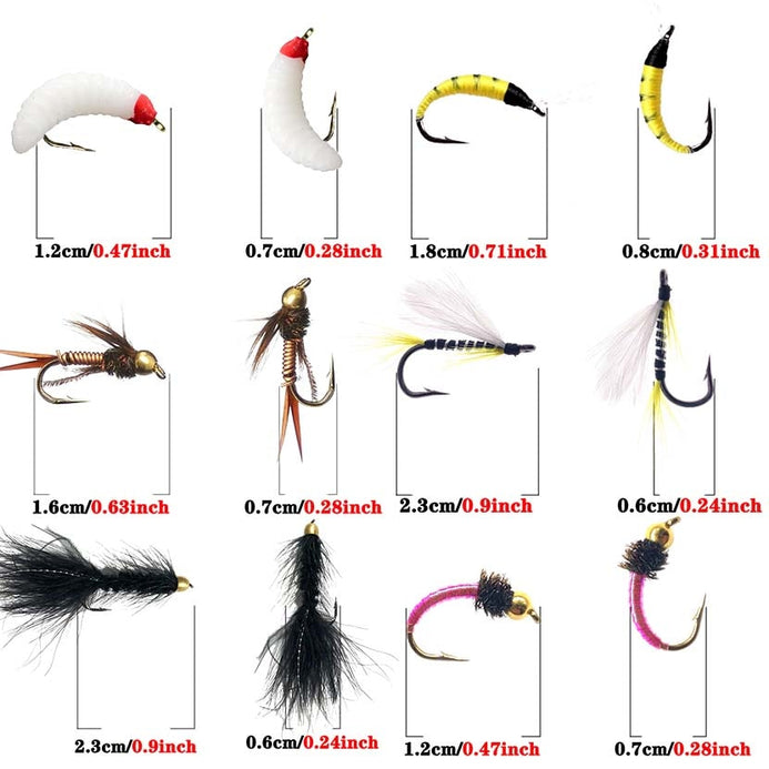 Classic Bass Trout Fly Fishing Dry/Wet Flies Assortment is the most concise and complete trout fly lineup ever assembled.  Each pattern selected based on top guides and professional insight. These are universal top producing patterns!