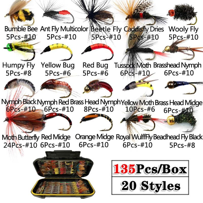 135Pieces/Box Wet/Dry Fly Fishing Lure Box Set