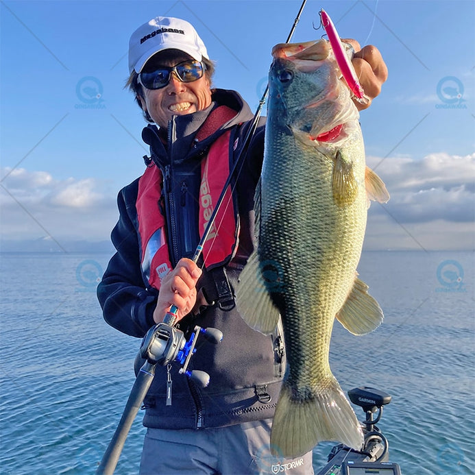The ONETEN R was specially designed by Yuki Ito and renowned jerkbait angler Shinji Sato. The objective of the ONETEN R was to build upon the unique jerking action of the ONETEN, and fine-tune for domination on Lake Biwa in both straight retrieve and traditional jerkbait applications. During jerking and retrieves, it exhibits unique performance, honed over countless years of experience and prototypes. This full contact jerkbait “system” targets specific depths, and will reliably draw out reaction bites no matter the season.1. ONETEN R retains the sharp, darting action of the original ONETEN, but during retrieves it’s designed to perform a refined, natural action that will get the attention of even the most cautious bass.