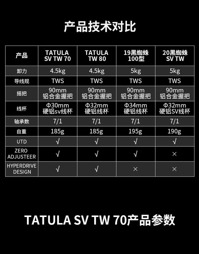 Daiwa Tatula TW SV 70 Baitcast Reel (2022 Version) 7+1BB Drag 4.5KG Weight 185g