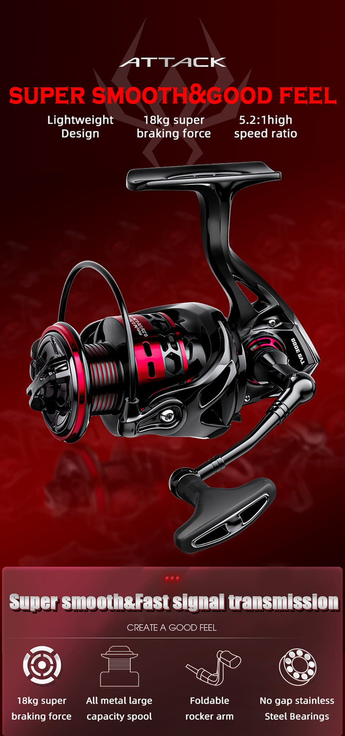 SeaKnight Attack Spinning Reel 5.2:1 18Kg Max Drag 7+1BB