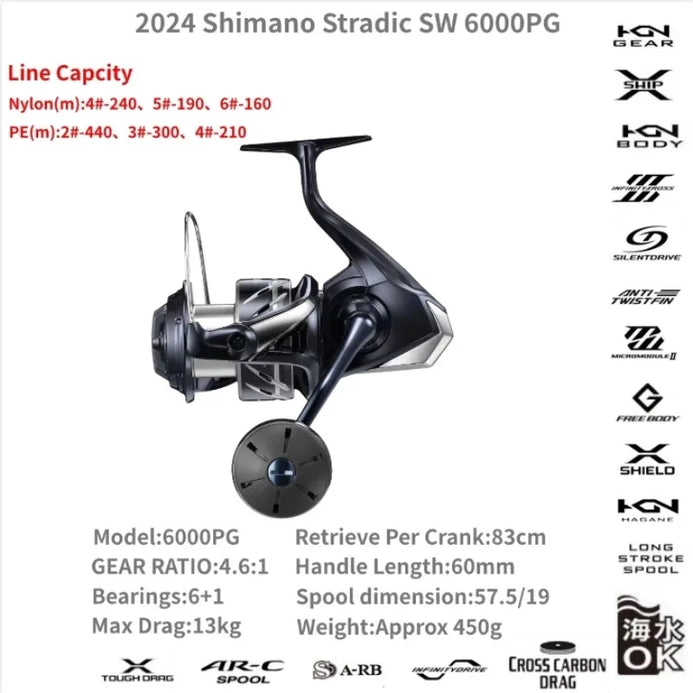 Shimano STRADIC SW Spinning Reel (2024 Version) 6BB+1RB 5.7/6.2/4.6/4.9/5.6