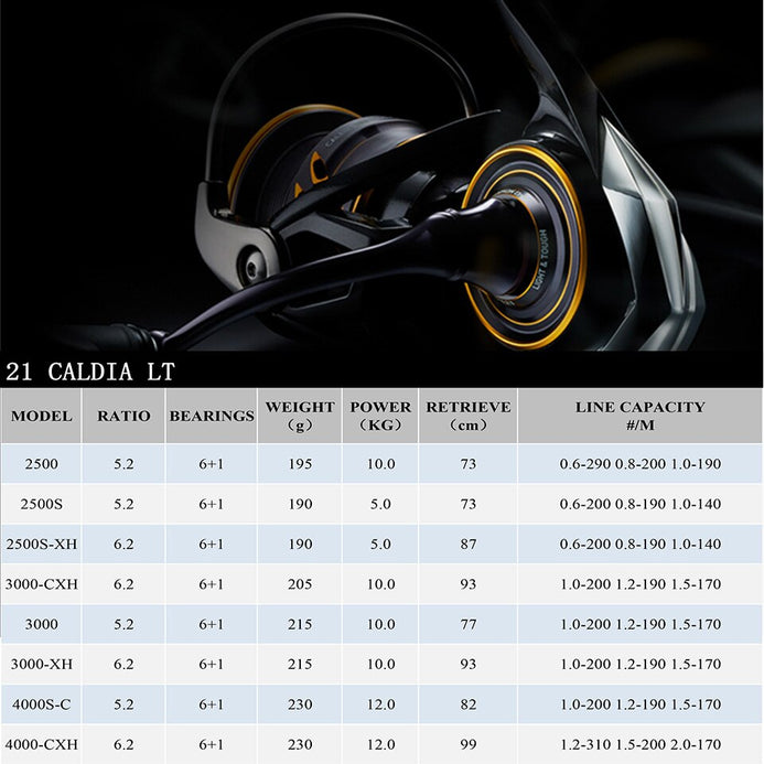 Daiwa CALDIA LT Spinning Reel 5KG-12KG Ultralight 190g-230g 6+1BB 5.1:1/5.2:1/5.3:1/5.7:1/6.2:1