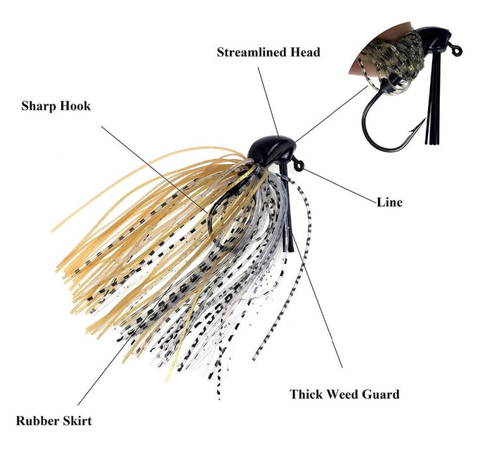 <WEED GUARD DESIGN> Each Lure includes heavy weed guard to help you get through cover easier. With Strong Wire Hooks and Weed Guards the Fishing Jigs Perform in Rocky or Weedy areas