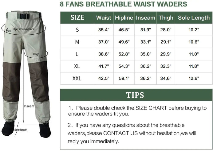 8Fans 3-Ply Breathable Neoprene Waterproof Waist Waders