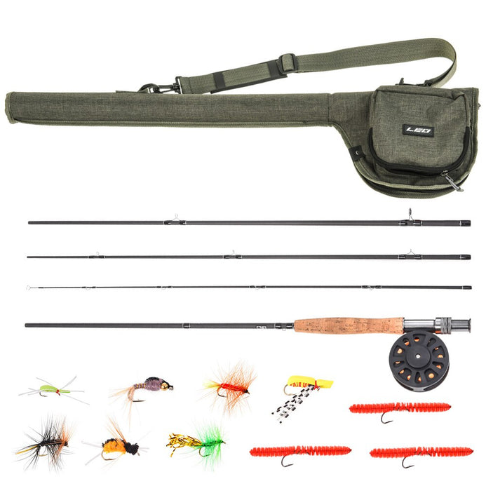 This fly combo includes a fly rod, reel with line, 10 flies, storage bag. It is designed for the new fly fisher to get started right away.