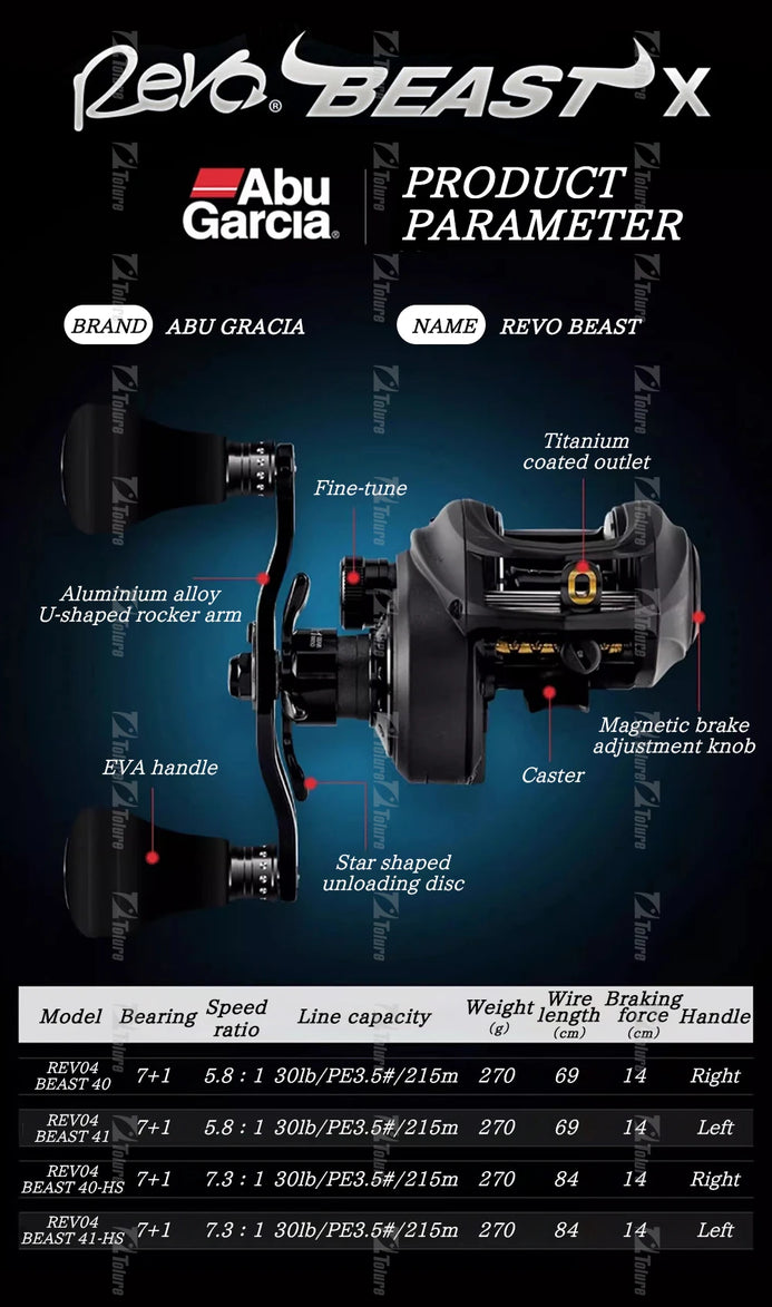 Abu Garcia REVO 4 BEAST Baitcasting Reel 5.8 7.3 7+1BB 14KG Braking Force Carbon Fiber