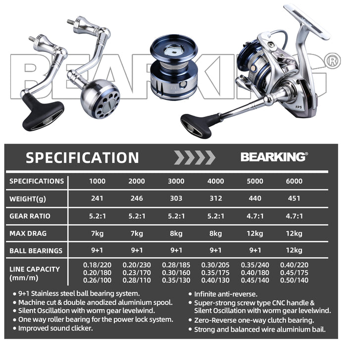BearKing HJ WINDRUNNER PRO Series 7BB 6.2:1 17lbs Max Power Spinning Reel BearKing BKT Series 9+1BB 5.2:1 Max Drag 12KG Spinning Reel ProBeros DM Series Spinning Reel 9-23KG Max Drag 3BB 5.2:1/4.7:1/4.9:1