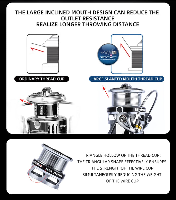 Soloking FLYPLUM R2 BFS Baitcaster Reel 8.1:1 159g/5.6oz Ultralight 6+1BB 5kg Drag BearKing Zeus II Series Spinning Reel 6-9BB 5.2:1/6.2:1 4-7Kg Max Drag BearKing Zeus Pro Carbon BFS Baitcast Reel 8+1BB 7Kg Max Power 7.3:1