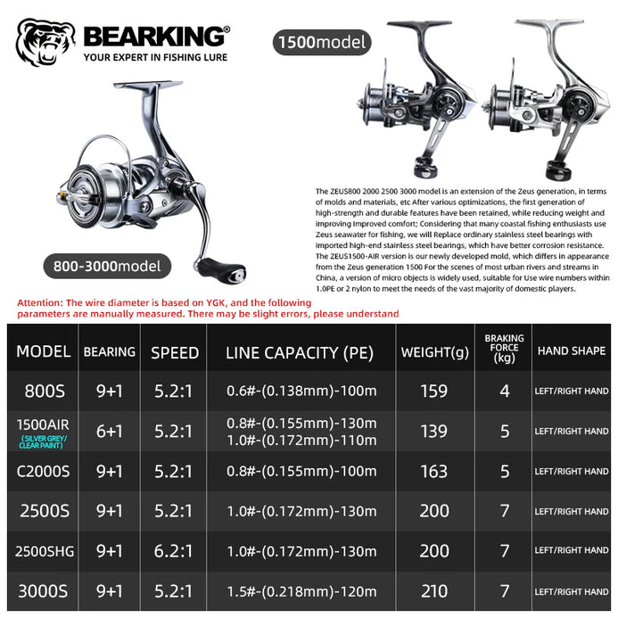 BearKing Zeus II Series Spinning Reel 6-9BB 5.2:1/6.2:1 4-7Kg Max Drag