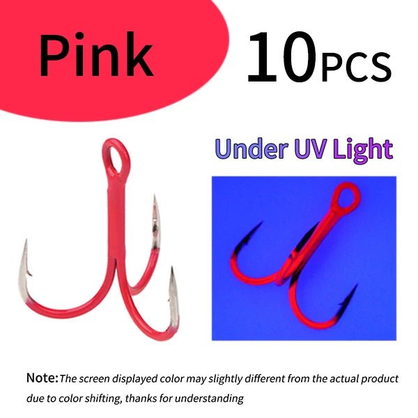 Ellllv 10PCS 14# - 3/0 Fluorescent/Luminous Treble Hooks