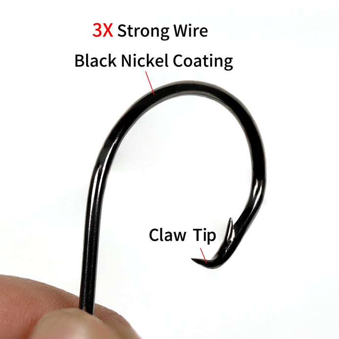 3X strong wire, barbed, claw tip, Forged flatting shank, Anti corrosion, big eye, top grade high-carbon steel hooks sharpened and polished by experienced machinists.
