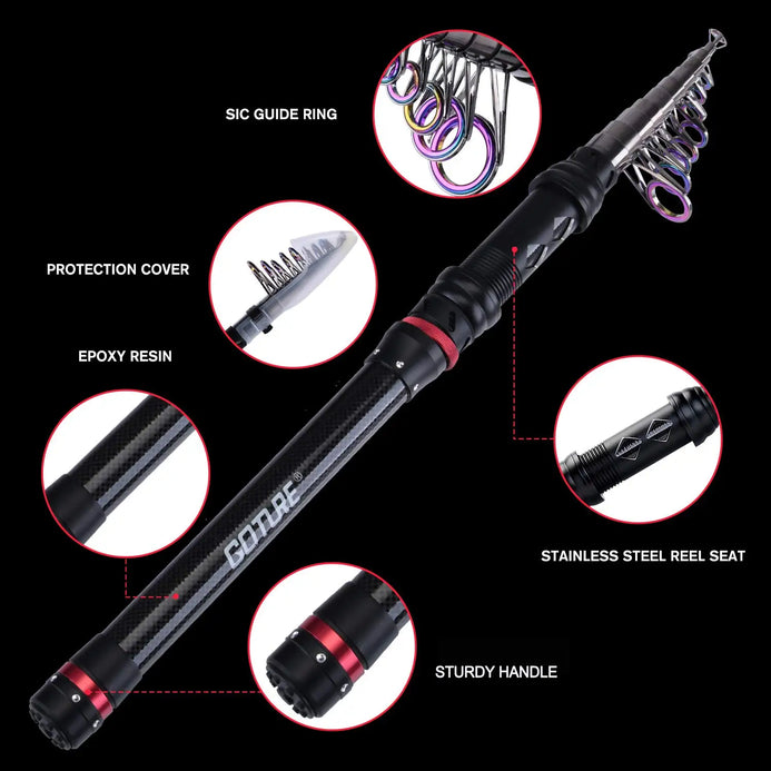 Unlock the power of the Goture AQUILA Carbon Telescopic Feeder Fishing Rod! With a length range of 1.8M-3.6M and M Power, this rod offers incredible versatility for all your fishing needs. Its top-quality carbon construction ensures durability and strength for a successful catch every time. Get ready to take your fishing game to the next level!