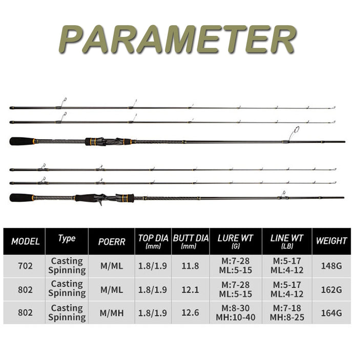 JOHNCOO Booster 2.1m/2.4m 3PC with 2 tips M/ML Spinning/Casting Rod