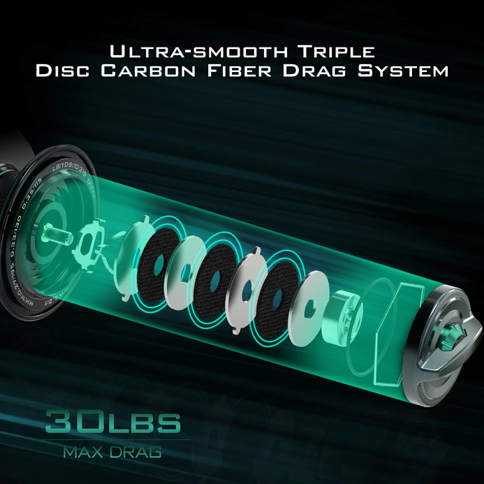 EXCEPTIONALLY STRONG & SMOOTH DRAG: This premium saltwater spinning reel is designed with a powerful braking force for hard fighting fish. Sizes 3000/4000 have an ultra-smooth triple-disc carbon fiber drag system and 30lbs max drag; 5000/6000 have a quad-disc carbon fiber drag system with 40lbs max drag; 8000 have a special double drag system, that consist of five front carbon fiber discs and one oversized spool carbon disc, to provide 55lbs max drag. Perfect for saltwater, big game fish.
