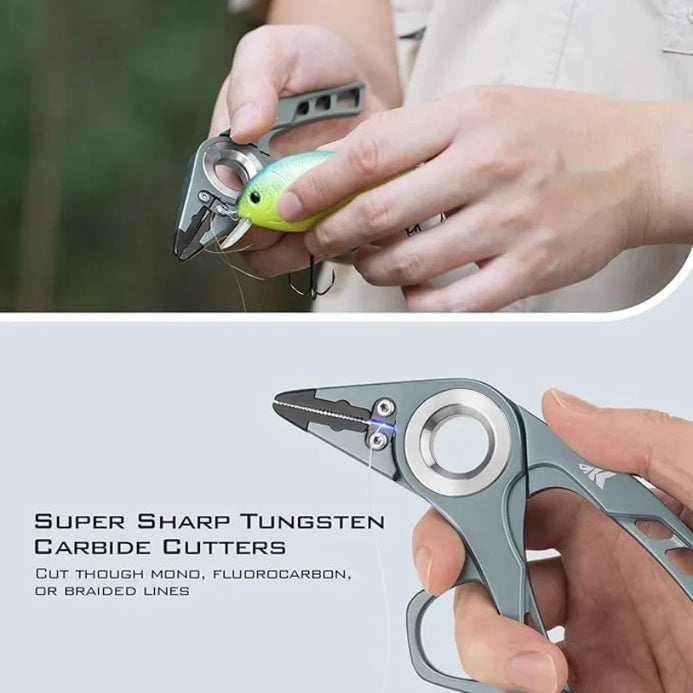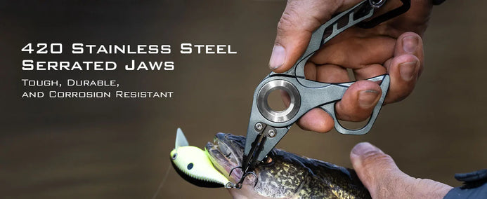 • Tungsten Carbide Cutters & Serrated Jaws - The fishing line cutters cut though mono, fluorocarbon, or braided lines with ease. These line cutters allow you to cut your tag end as close to the knot as you want without any obstructions. The aggressive serrated stainless-steel jaws grab and hold hooks for easy dehooking.