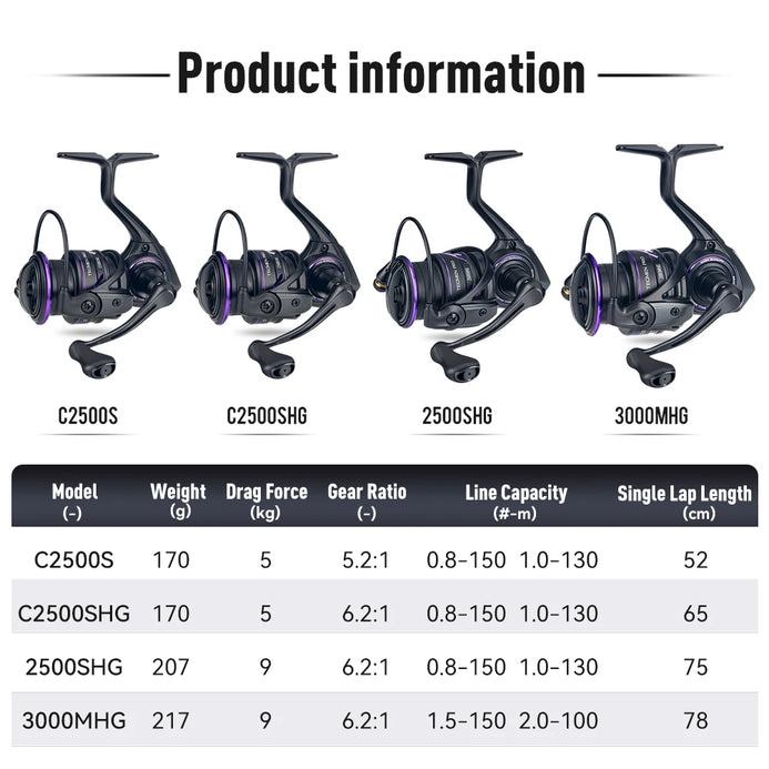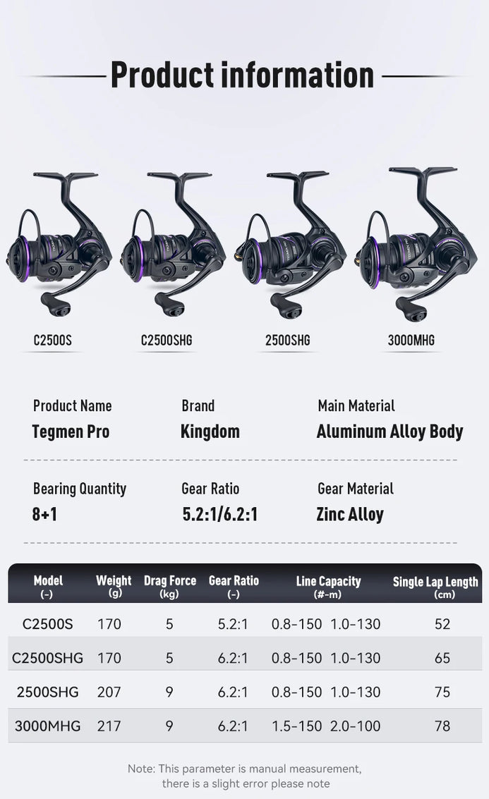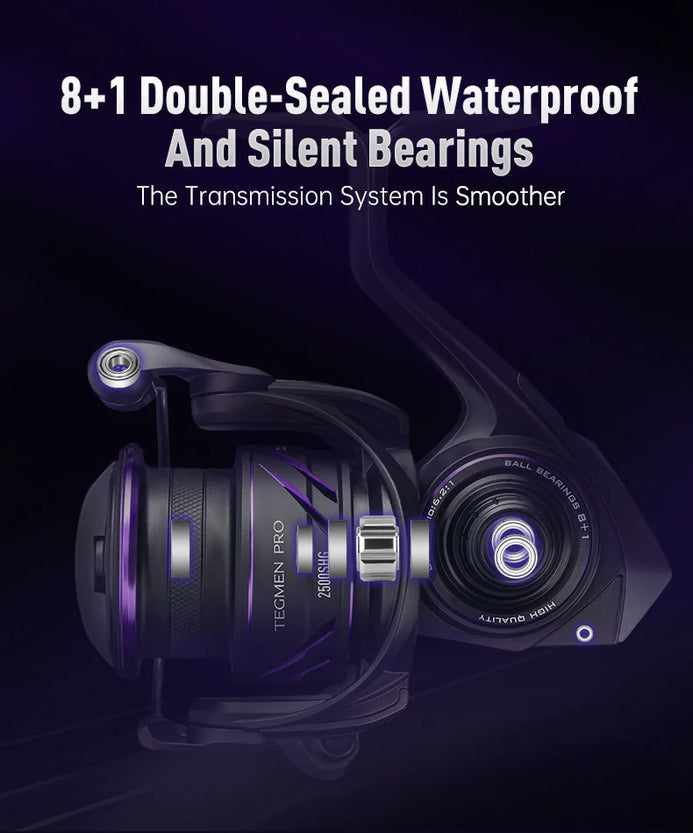 Kingdom Tegmen Pro Spinning Reel 5.2:1 6.2:1 High Speed Ratio 5-9kg Max Drag 8+1BB Ultralight