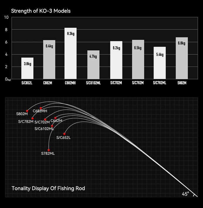Kingdom KO-Ⅲ High Carbon Spinning/Casting Rod 2PC 6'5" - 8' M ML MH L