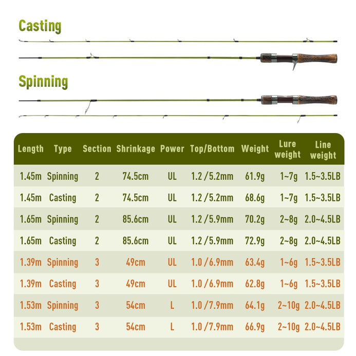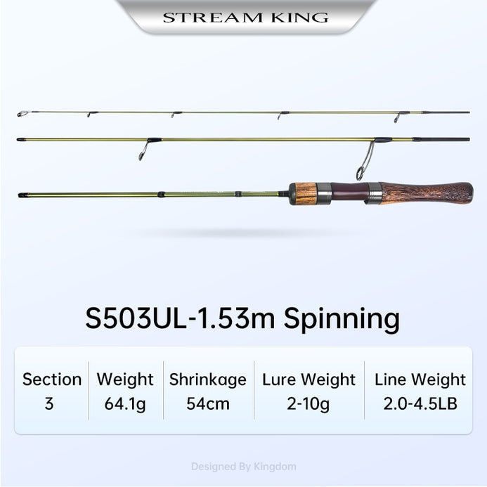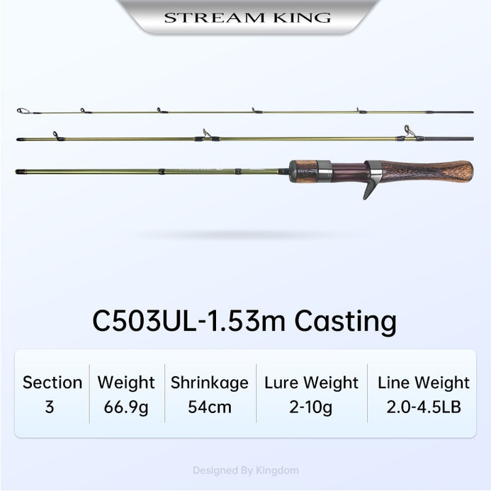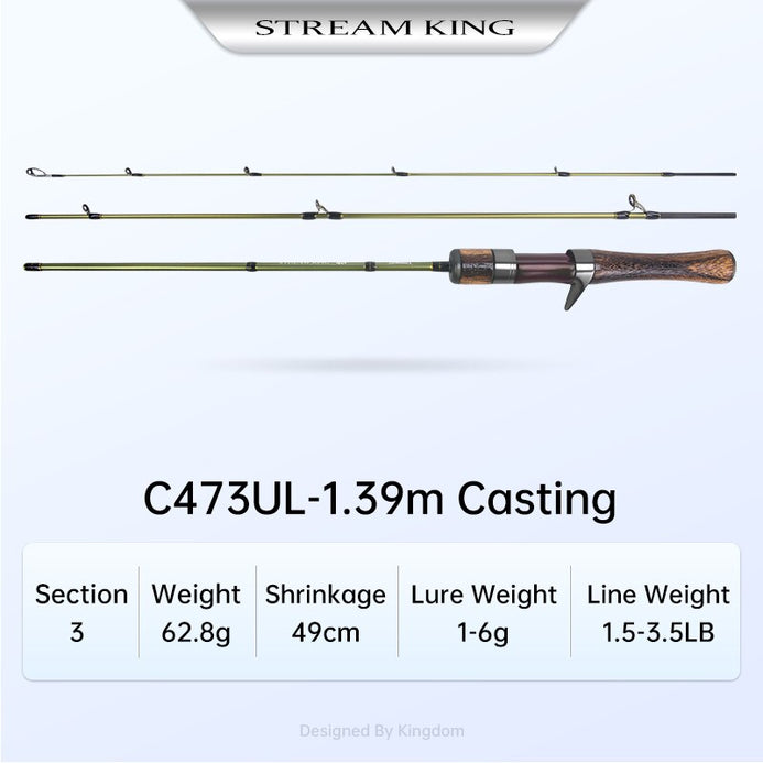 Kingdom Stream King Carbon Spinning/Casting Rod MF Action 2/3PC UL L 1.39m-1.65m