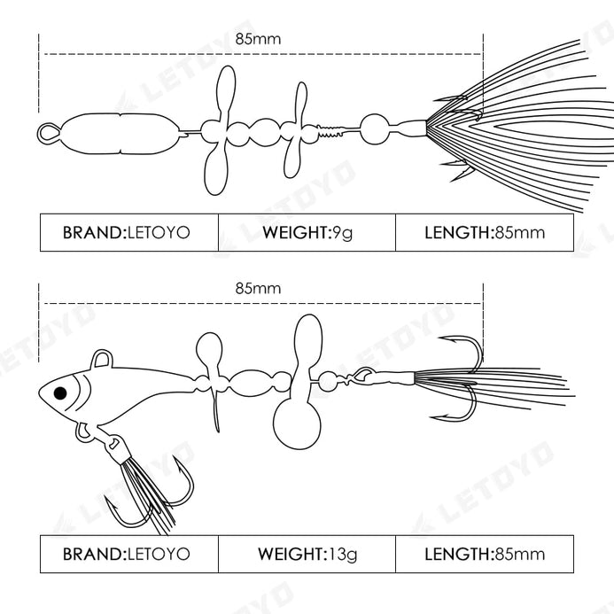 LETOYO 1Pc 9g 70mm/13g 85mm Rotating Spinner Lure