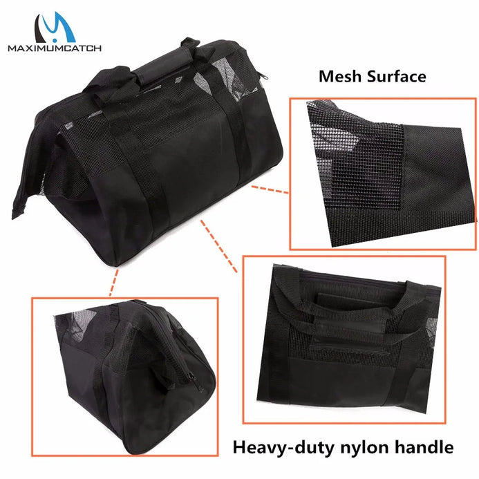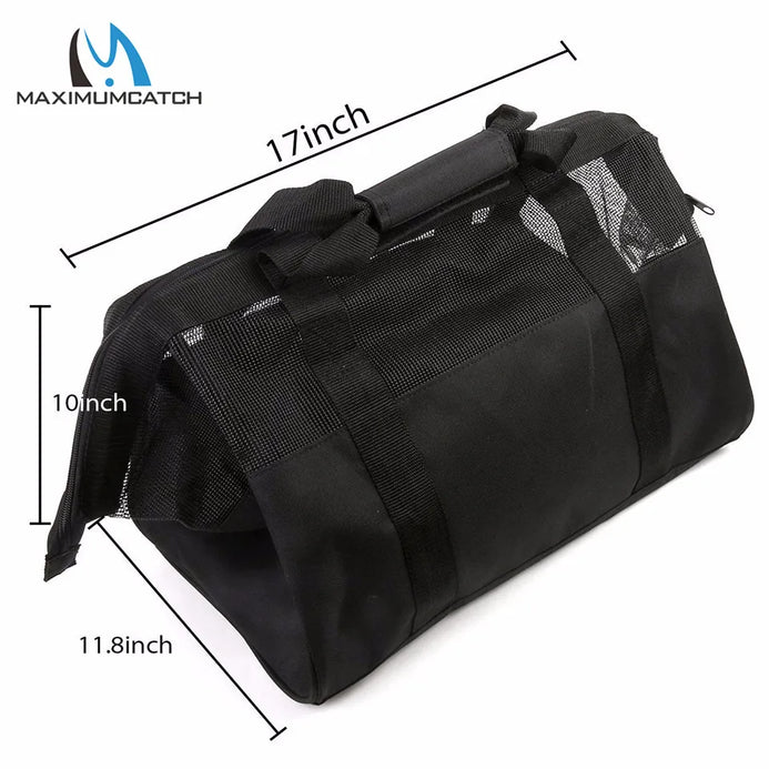 ---This large bag is vented to allow air circulation and drying, while accommodating boot foot waders or stocking foot waders plus wading shoes.