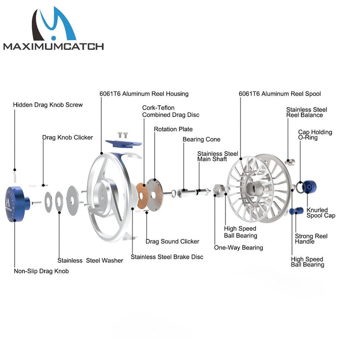 Maximumcatcg 1/3/4/5/6/7/8/9/10WT CNC Machined Aluminium Micro Adjusting Drag Fly Reel
