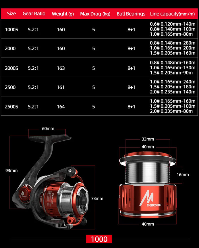 Meredith Hummingbird Series Spinning Reel 5Kg Max Drag 8BB+1RB 5.2:1 Ratio