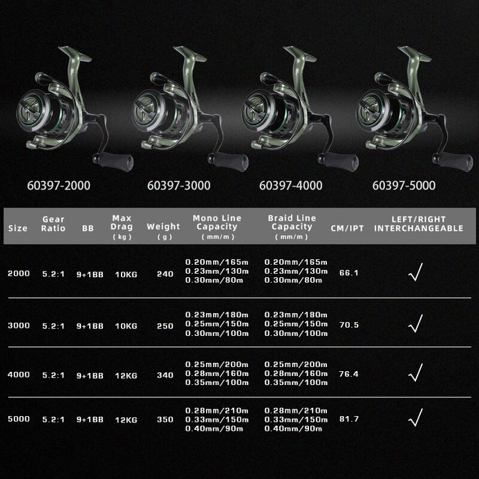 MiFiNE LEGEND Spinning Reel  6+1BB 5.2:1 12kg Max Drag MiFiNE STORM TX Spinning Reel 12KG Max Drag 9+1BB 5.2:1 Ratio MiFiNE TOURMENT Spinning Reel 4KG Max 5.1:1  6+1BB