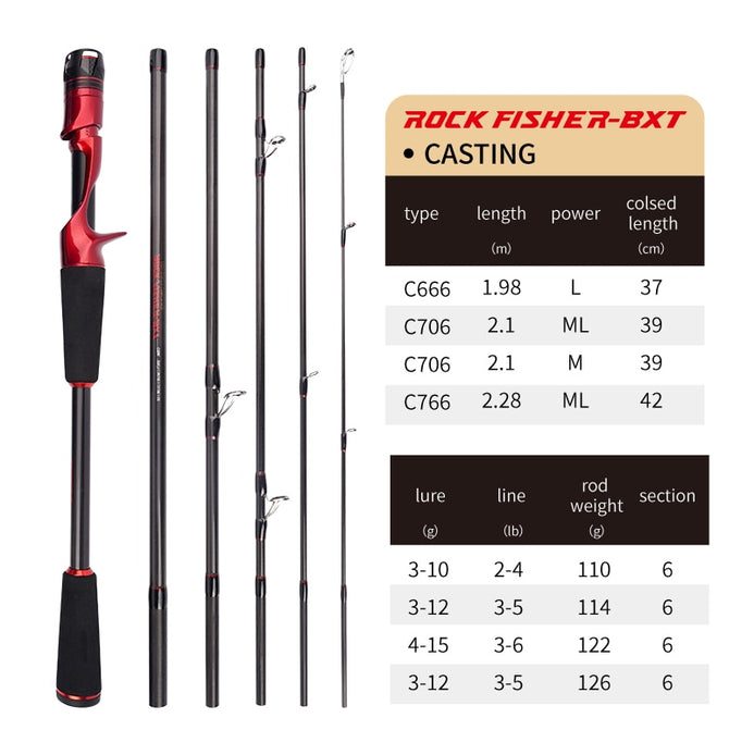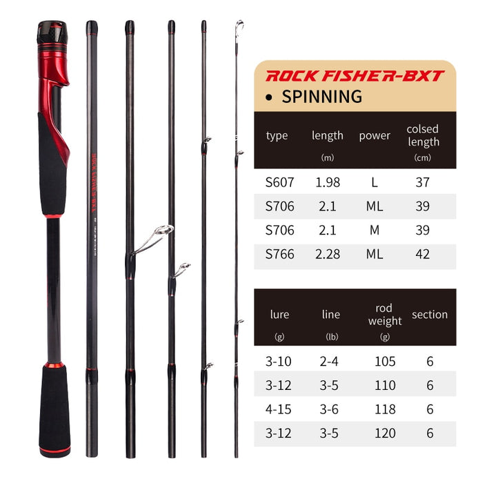 Cemreo Rock Fisher BXT 1.98m/2.1m/2.28m 6PC Champion Carbon Spinning/Casting Rod