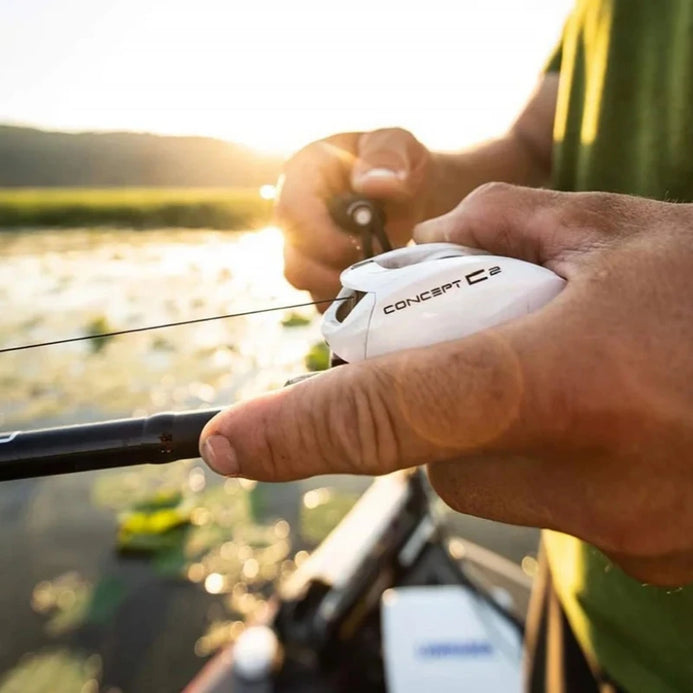 Unleash your full fishing potential with the 13 Fishing Concept C2 Baitcast Reel. With a powerful max drag of 25LB, smooth 9 ball bearings, and available  gear ratios of 6.8/7.5/8.3, this reel offers unmatched performance and precision. Dominate the waters and reel in your biggest catch yet!