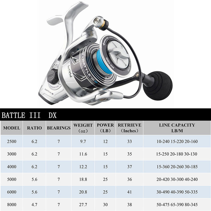 PENN BATTLE III DX Spinning Reel 7BB 6.2:1/5.6:1/4.7:1 13.6Kg Max Drag