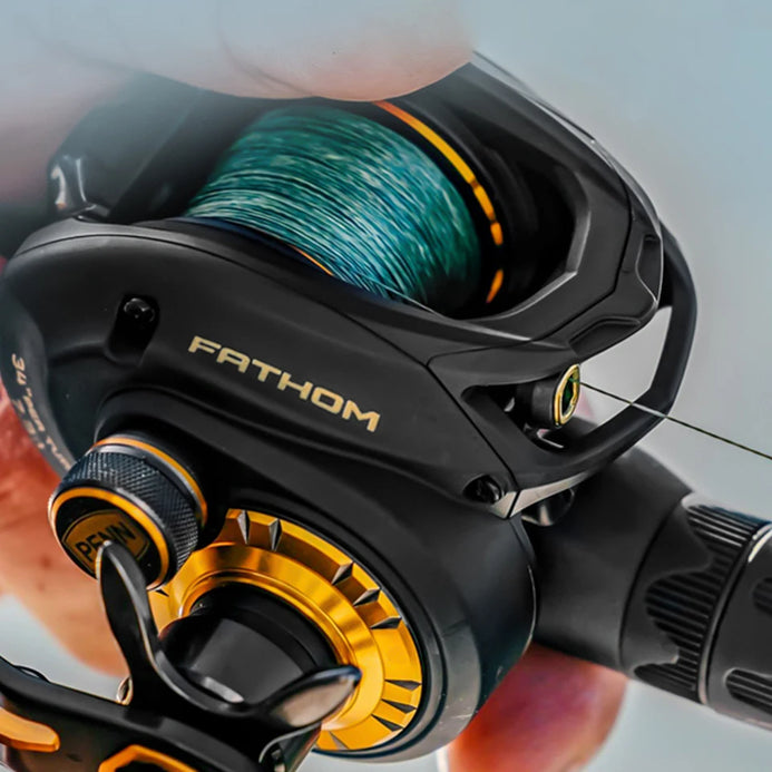 The PENN Fathom low profile baitcast reels offer all the features you need to tackle the toughest saltwater fish. The Full Metal Body and Right Side plate, matched with a brass main gear and bearing supported pinion offer a drivetrain with unparalleled power, while the TiN Coated Level Wind System and Synchronized Drag and Level Wind system (*400 size only) give extra durability under high drags. Available in 200, 300 and 400 sizes with both standard and high speed gear ratios. Left hand models available in standard gear ratio only.