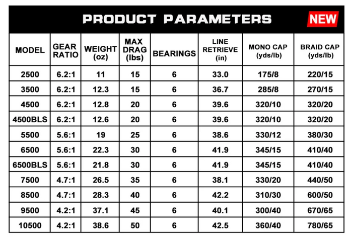 Max Drag: 6.8kg/9kg/13.6kg/18.1kg/22.7kg
