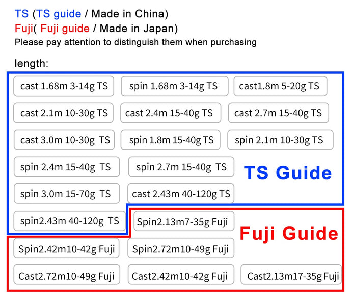 Spinning Fuji Guide fishing rod. All 8pcs Guides are made by Fuji. Guides Used Fuji MN Frame.new concept"O"rings. made in Japan. Fuji 'CC' Forsted Silver-White.guide Anti-winding design.Salt water corrosion resistance is 5.5 times of ordinary steel
