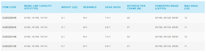 • Gear ratios: 6.2:1, 7.4:1, and 8.5:1 for various techniques and retrieves.