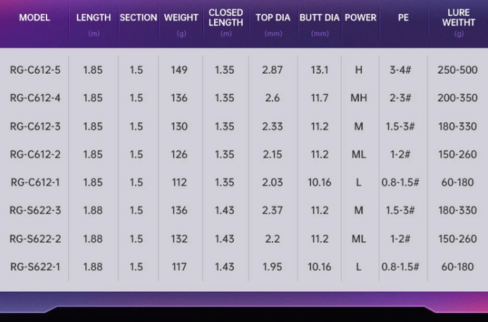• Multiple Power Ratings (L / ML / M / MH / H): Choose the perfect action for your technique—whether you're finesse fishing with light lures or targeting hard-hitting predators.