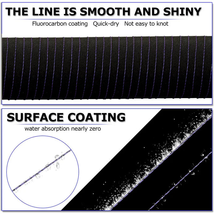 2. 8 Strands PE line, unique braid construction, made of ultra-high strength PE fibers.