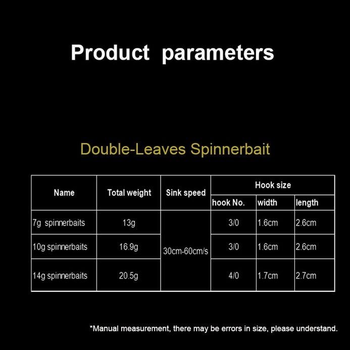"7g (1/4Oz ) ", "14g(1/2Oz )" , "10g(3/8Oz )" means the metal fish head weight not the spinnerbait full weight