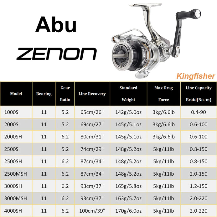 Abu Garcia Zenon Spinning Reel 10+1BB Ultralight 3-5Kg Braking 5.2 6.2 Ratios