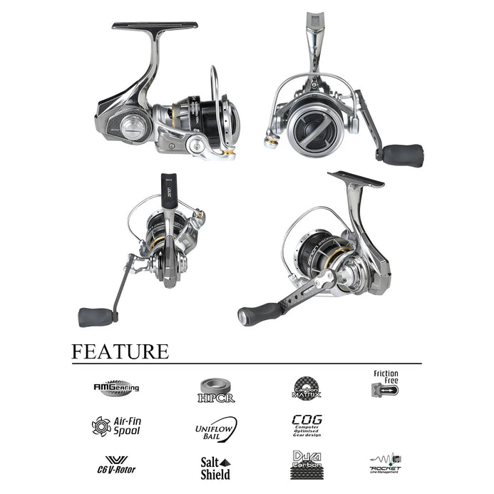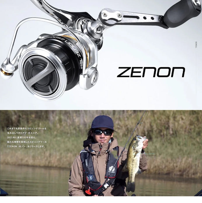 Introducing Abu Garcias lightest, most compact spinning reel, the Zenon. Zenon combines a C6 V-Rotor and Ultra lightweight Air-Fin Spool with a one-piece Magnesium body to deliver a reel that's under 5 ounces. Coupled with AMGearing, Rocket Line Management System, Compact Bent Carbon handle, and integrated drop shot keeper, the Zenon spinning reels are optimized for performance.