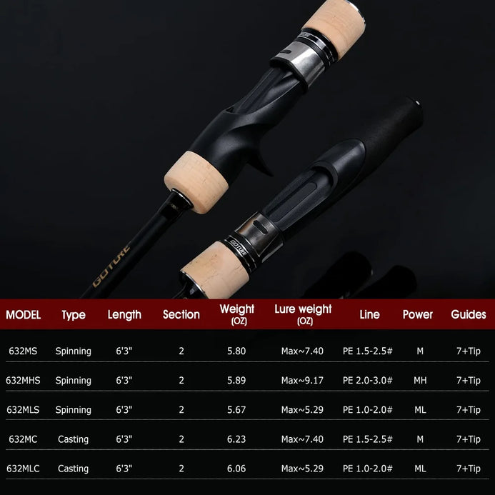 Goture Kaishin Series Ultralight Casting Rod 1.7M/1.83M 2PC M Power Goture POLLUX II Slow Jigging Casting/Spinning Rod M MH ML Power 2PC 1.89m Goture POLLUX Slow Jigging 2PC Spinning/Casting Rod 1.83m/1.98m ML/M/MH