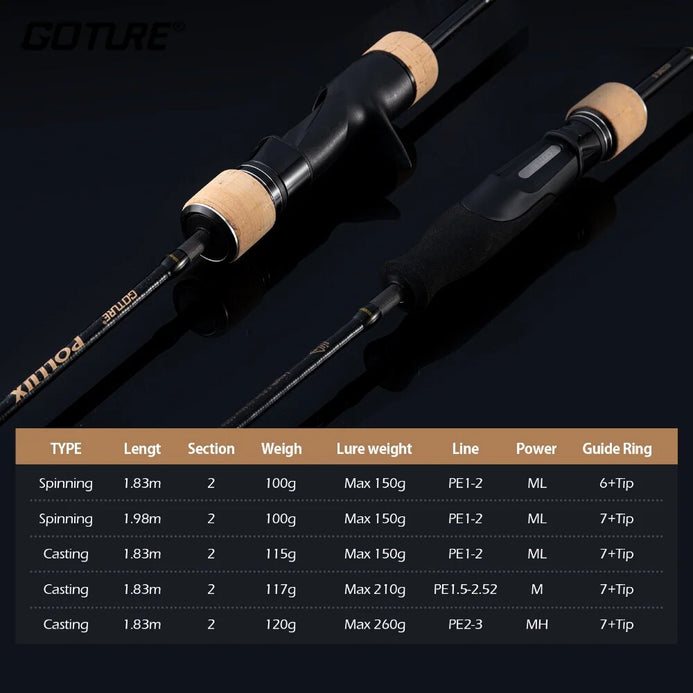 Goture POLLUX II Slow Jigging Casting/Spinning Rod M MH ML Power 2PC 1.89m Goture POLLUX Slow Jigging 2PC Spinning/Casting Rod 1.83m/1.98m ML/M/MH Goture REGAUL 1.83m/1.98m ML M MH 2PC  Pro Spinning Rod