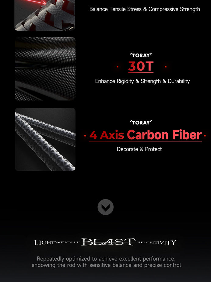 Introducing the Handing BLAST Competitive Casting/Spinning Rod, equipped with T1100+40T+30T TORAY Carbon. This high-performance rod comes in ML, M, and MH sizes, with a length range of 1.98m-2.08m. Experience superior strength and precision on your fishing trips with this expertly crafted rod.