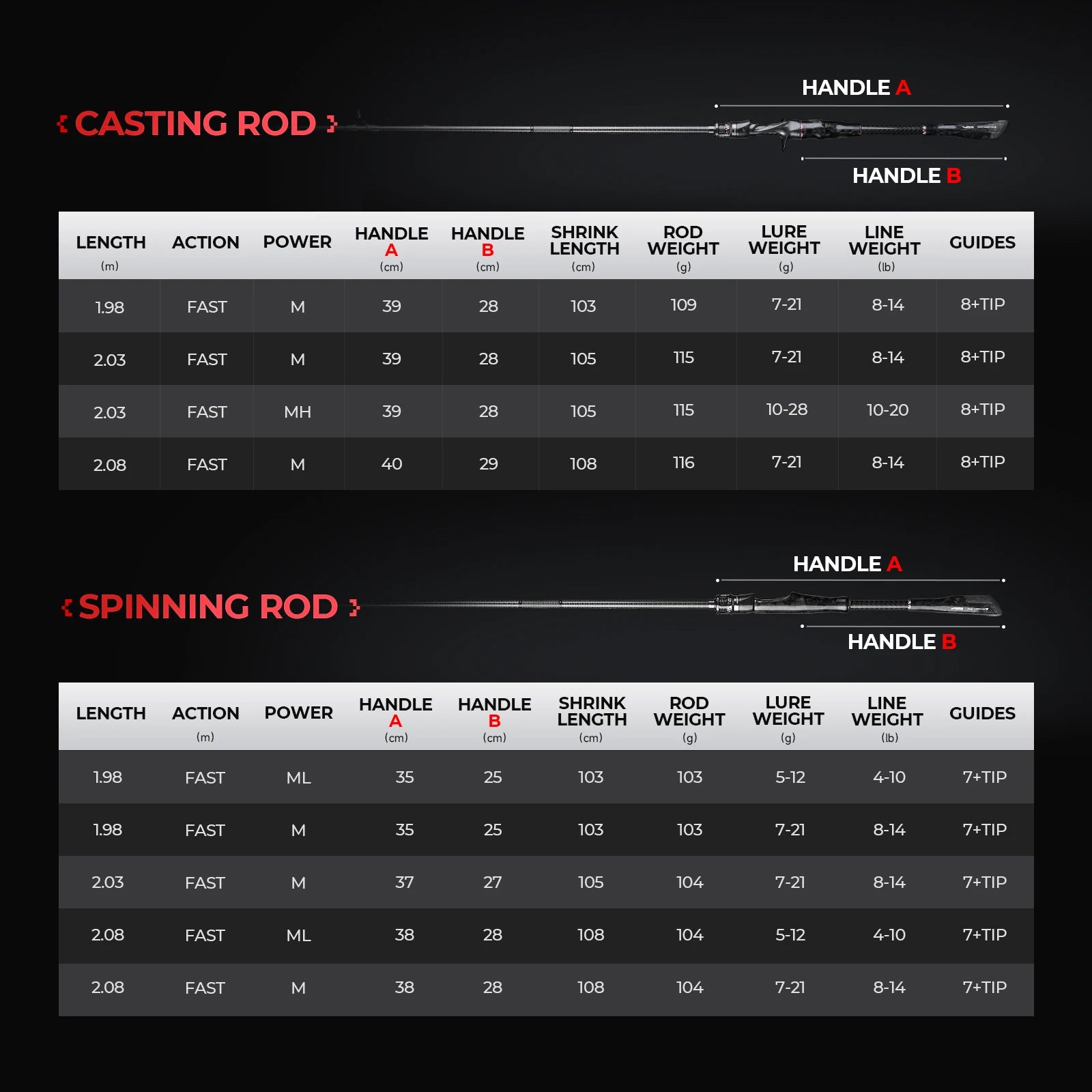 Handing BLAST Casting/Spinning Rod T1100+40T+30T TORAY Carbon ML M MH 1.98m-2.08m
