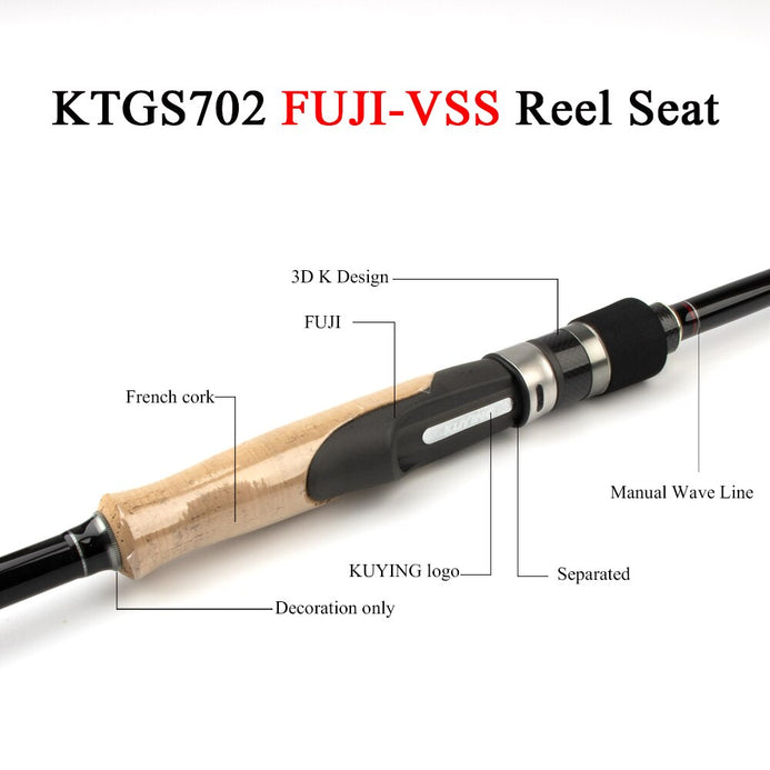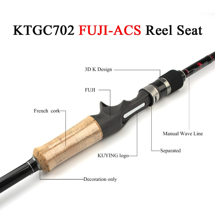 The Kuying Tournament 2.1m/6.88ft Carbon Spinning or Casting Rod provides an excellent balance of power and sensitivity, thanks to its double tips and H-hard carbon construction. This rod is designed for a range of techniques and its sturdy Kuying build can take a beating out on the water. A must have for the tournament angler!