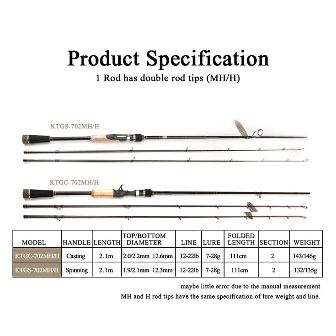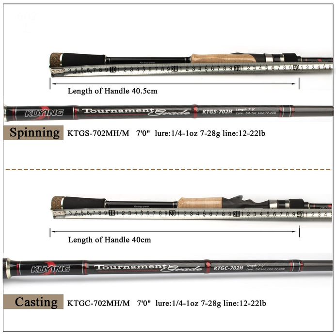 Kuying Tournament 2.1m/6.88ft Double Tips MH H Hard Carbon Spinning/Casting Rod