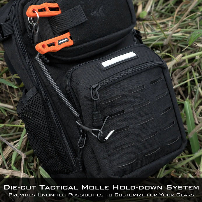 TOUGH MATERIAL & MOLLE SYSTEM – The KastKing BlowBak sling backpack is made from tough 600D material for excellent long-term performance and reliability. Our water repellent coating on the inside provides extra protection to ensure your contents are protected from the elements. The die-cut tactical molle hold-down system provides unlimited possibilities to customize your BlowBak sling bag to suit your needs.