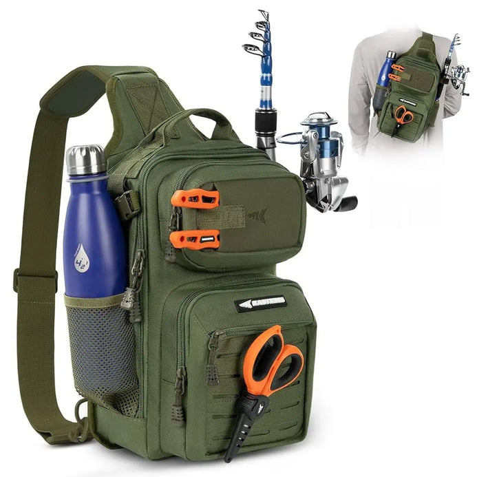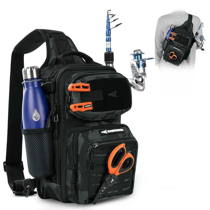 VERSATILE DESIGN – KastKing BlowBak Tactical Fishing backpacks are a light-weight, versatile, sling bag designed for the adventurous angler who likes to hike, canoe, kayak, or SUP to more remote fishing locations. The BlowBak offers the essential features you will need to store and carry your fishing rod/ fishing reel, tools, lures, and tackle for a few hours of fishing without weighing you down. (Dimensions – 8” x 6” x 14”)