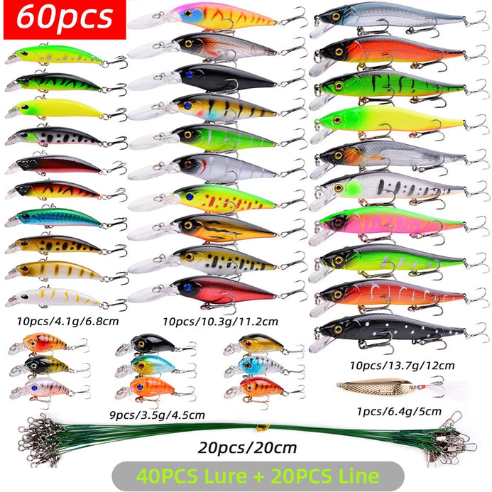 Mixed Hard Crankbait/Minnow/Popper Bait Lure Kit 10-84Pcs